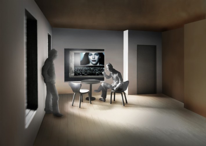 Kino Razzia, Modellbild, Blick vom Hotelzimmer in den Kinosaal