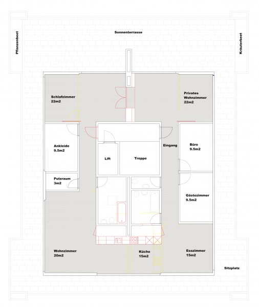 Wohnungsumbau Feusisberg, Grunsriss, 1:100